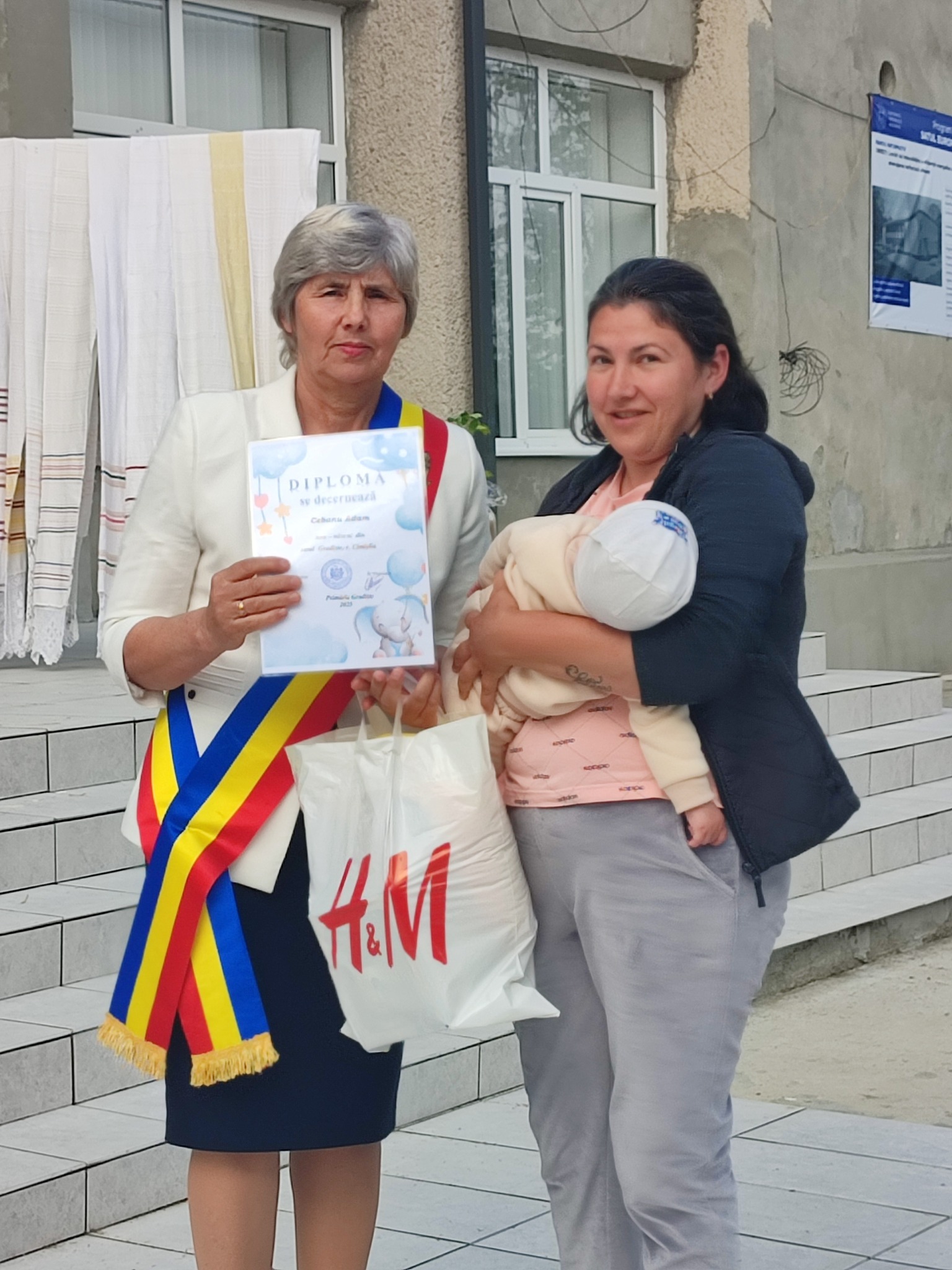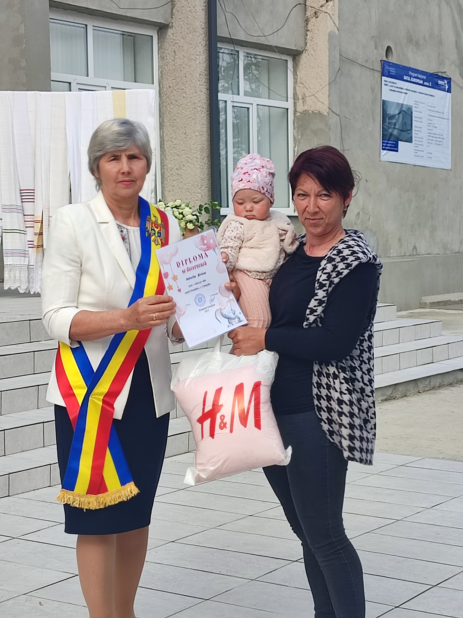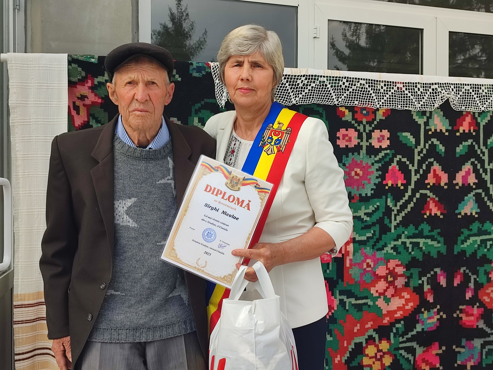 Primarul Nina Nistreanu a oferit diplome și cadouri celor mai tineri membri ai comunității – copiii născuți în anul 2025, cuplurilor care au aniversat 50 de ani de căsătorie, dar și celor mai în vârstă locuitori ai satului, în semn de respect și recunoștință.